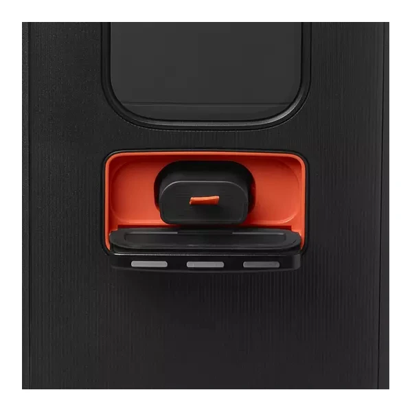 اسپیکر JBL PartyBox Club 120 از نظر طراحی ظاهر چشمگیری دارد که به راحتی توجه هر کسی را به خود جلب میکند. ابعاد آن معادل ۲۸۸.۴x۵۷۰x۲۹۷ میلیمتر است و وزن آن ۱۱۰۵۰ گرم است که به نسبت دیگر اسپیکرهای قابل حمل در همین دسته، سنگین و حجیم به نظر میرسد. این وزن زیاد به دلیل وجود سیستمهای صوتی قدرتمند و باتری لیتیوم پلیمری بزرگ در داخل اسپیکر است. در واقع، طراحی این محصول به گونهای است که بتواند صداهای بلند و با کیفیت را در فضاهای بزرگ تولید کند و بدنه آن به گونهای ساخته شده که بتواند در برابر ضربات و شرایط محیطی مختلف مقاومت کند. اسپیکر JBL PartyBox Club 120 از بلوتوث ۵.۴ پشتیبانی میکند که یکی از بهترین نسخههای بلوتوث موجود است و امکان اتصال سریع و پایدار به دستگاههای مختلف نظیر گوشیهای هوشمند، تبلتها و لپتاپها را فراهم میآورد. علاوه بر این، این اسپیکر دارای ورودی USB و AUX نیز هست که به کاربران این امکان را میدهد تا از طریق کابلهای مختلف به اسپیکر متصل شوند. یکی از ویژگیهای جالب اسپیکر PartyBox Club 120، ورودی گیتار آن است. این ورودی به شما این امکان را میدهد که به راحتی گیتار یا سایر سازهای موسیقی را به اسپیکر وصل کنید و صدای آن را از طریق اسپیکر بشنوید. این ویژگی برای کسانی که علاقهمند به اجرای زنده موسیقی هستند، بسیار مفید است.