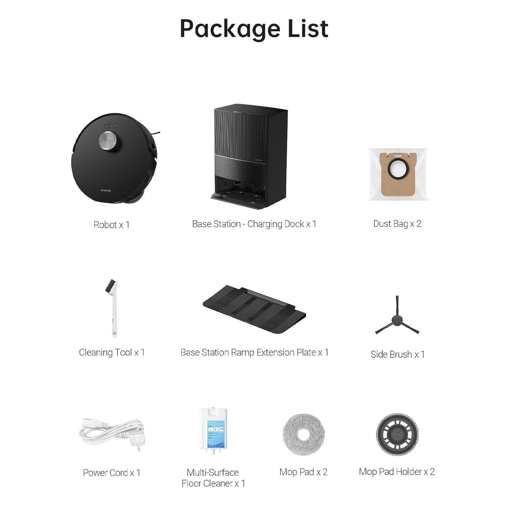 ایستگاه خودکار چندمنظوره: تخلیه گرد و غبار، شست‌وشوی پد، خشک‌کردن و پر کردن مجدد مخزن آب به‌صورت کاملاً خودکار.