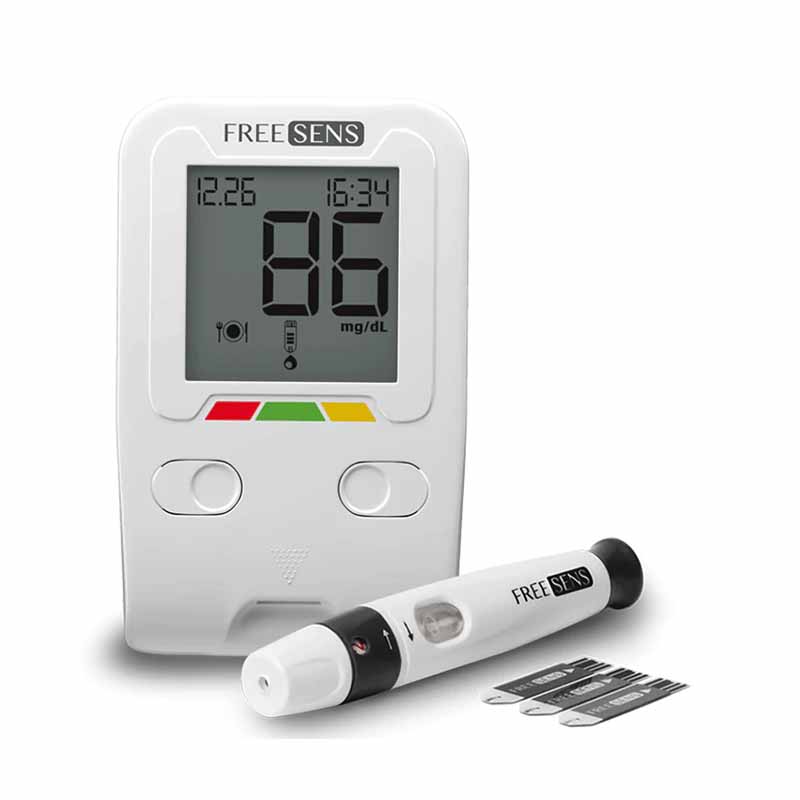 دستگاه تست قند خون فریسنس (Freesense) یکی از محصولات دقیق و کاربردی برای افراد دیابتی و کسانی است که نیاز به کنترل روزانه قند خون خود دارند. این دستگاه با طراحی ساده و کاربری راحت عرضه شده و به کمک آن میتوانید در مدت زمان کوتاه، نتیجه آزمایش قند خون خود را مشاهده کنید. همراه این دستگاه، ۵۰ عدد نوار تست قرار داده شده تا نیاز شما برای مدت زمان طولانی تأمین شود.