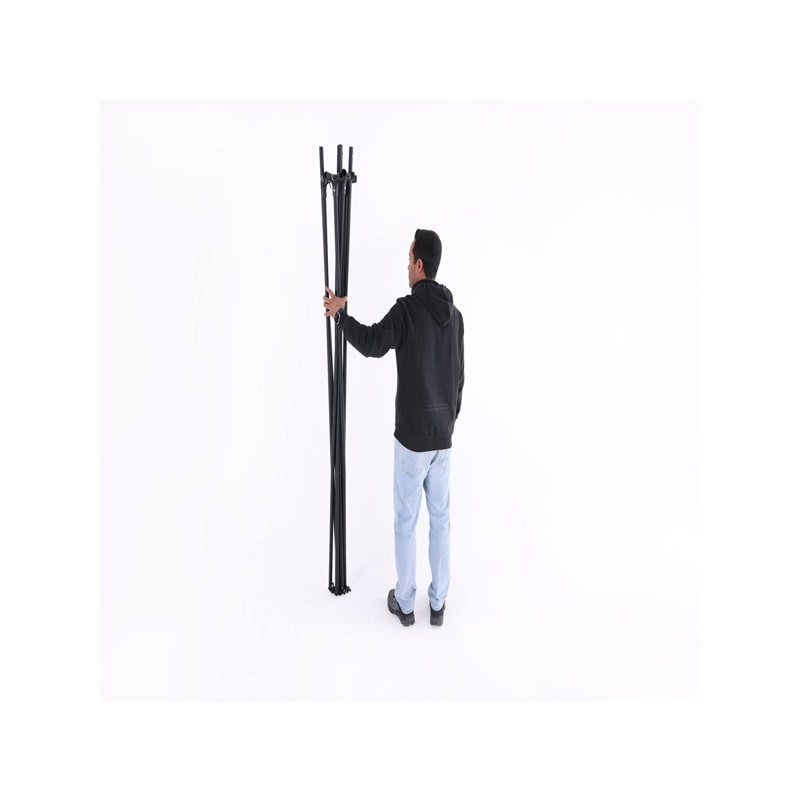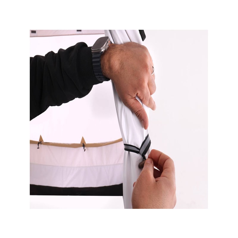 این سایبان با ساختاری هوشمندانه طراحی شده تا در عین سبک بودن، پایداری بالایی در برابر وزش باد و شرایط متغیر محیطی داشته باشد. پایه‌ های فلزی مقاوم به‌ همراه بندها و گیره‌ های اتصال محکم، ثبات سایبان را در زمین تضمین می‌ کنند. همچنین طراحی بازشونده و جمع‌ شونده‌ ی آسان آن باعث می‌ شود نصب سایبان تنها در چند دقیقه انجام شود، بدون نیاز به ابزار خاص یا مهارت فنی.