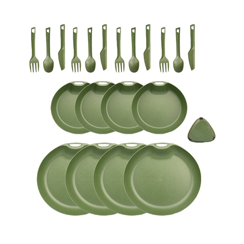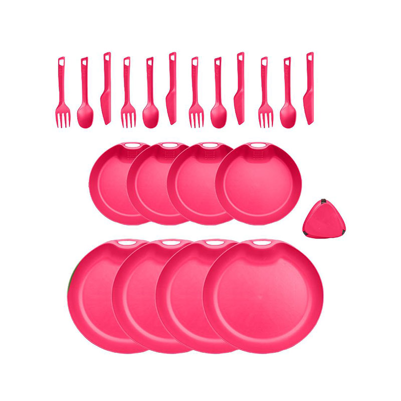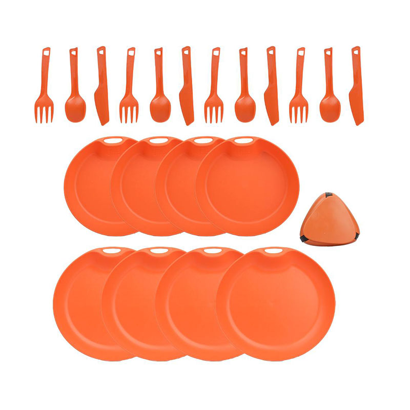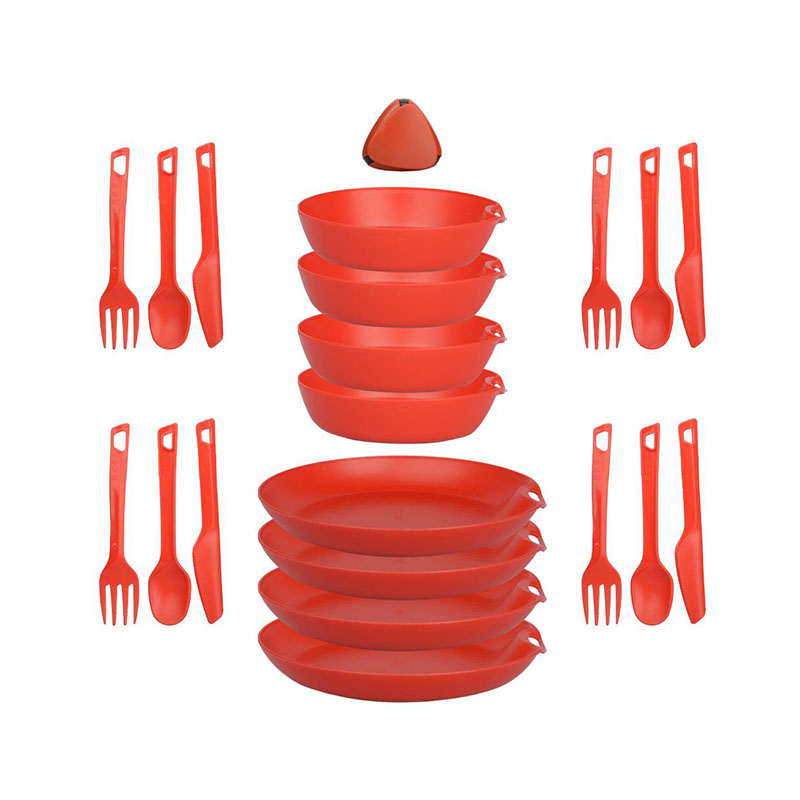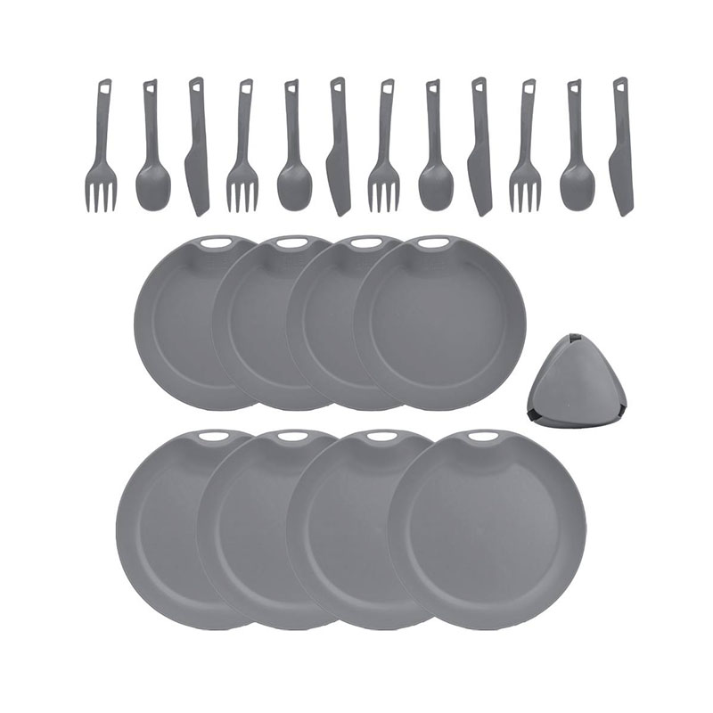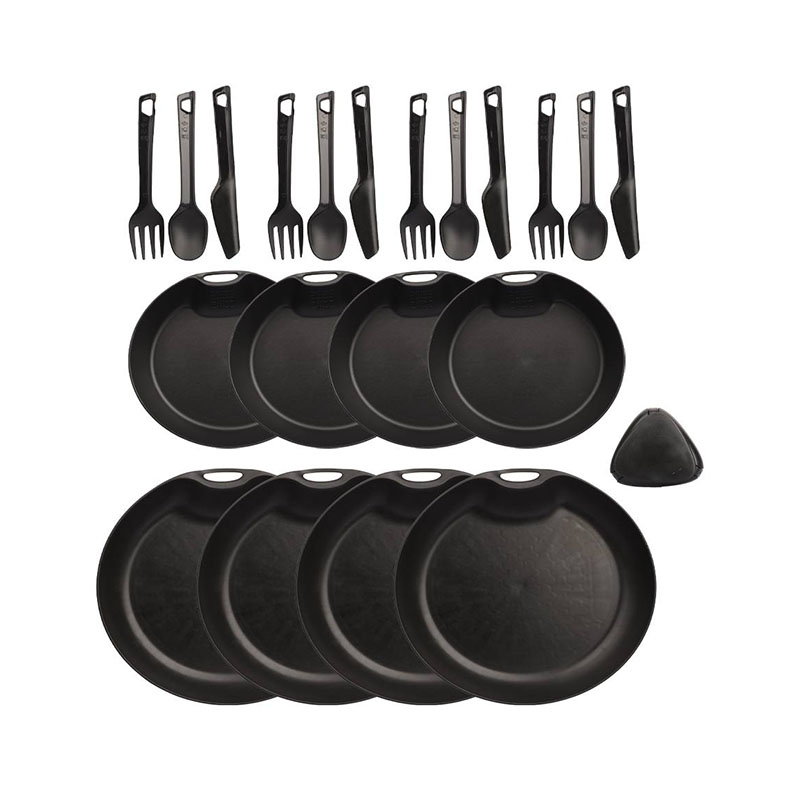 این ست همه‌ ی وسایل مورد نیاز برای پخت‌ و پز، سرو و مصرف غذا را شامل می‌ شود. از ماهیتابه و قابلمه گرفته تا بشقاب، لیوان و قاشق و چنگال، همه چیز در این مجموعه گنجانده شده تا شما را از حمل وسایل اضافی بی‌ نیاز کند.