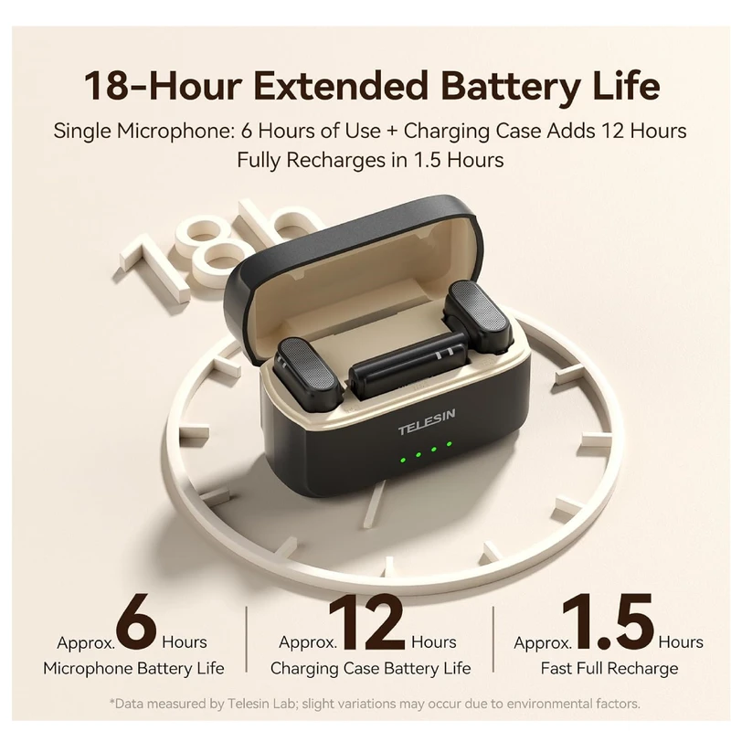 ست تلسین مدل P5-MCP-01 از باتریهای داخلی با شارژدهی بالا بهره میبرد که در حدود 5 تا 6 ساعت ضبط مستمر را پشتیبانی میکند. با قابلیت شارژ سریع Type-C، زمان خاموشی میکروفنها به حداقل میرسد و کاربر میتواند بدون نگرانی از اتمام شارژ، روی فعالیت خود متمرکز شود.