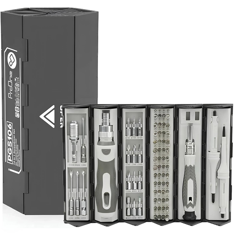 ست پیچ گوشتی پرووان مدل PGS106 با طراحی کامل، کیفیت ساخت بالا و تنوع ابزار، انتخابی اقتصادی و کارآمد برای افرادی است که به دنبال یک مجموعهی همهکاره و بادوام برای کارهای روزمره و تعمیرات الکترونیکی هستند.