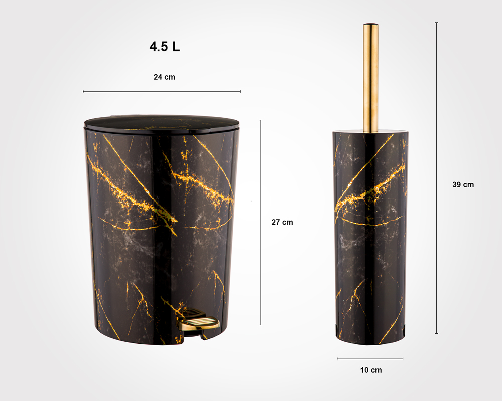 سطل این مجموعه دارای ابعادی استاندارد است که فضای کمی اشغال کرده و درعین‌حال حجم کافی برای استفاده روزمره را ارائه می‌دهد. فرچه همراه ست نیز با طراحی ارگونومیک و برس مقاوم، امکان نظافت آسان و کامل توالت را فراهم کرده و در محفظه‌ای هماهنگ با طراحی سطل قرار می‌گیرد تا جلوه‌ای یکپارچه و منظم به محیط بدهد.