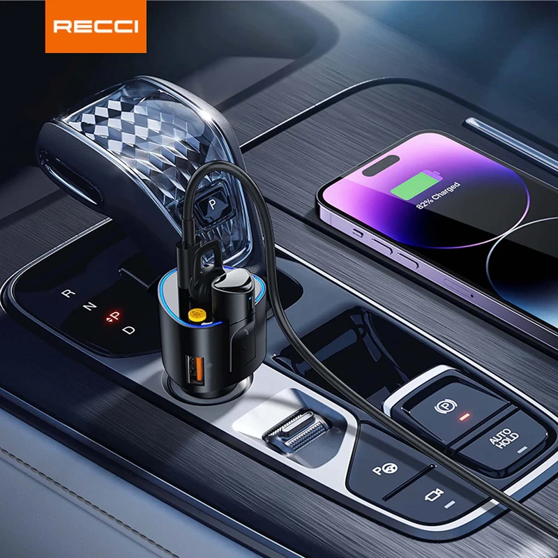 شارژر فندکی RECCi مدل RQ01 شارژ سریع تایپ سی و یو اس بی 36 وات RQ07 یکی از محصولات فوقالعاده جذاب و کاربردی کمپانی RECCI است که انواع برندهای گوشیهمراه و دیگر دستگاههای برقی سازگار مانند تبلت، دوربین دیجیتال و … را تامین انرژی میکند. علاوه بر این با کمک آن امکان مکالمهای راحت و بدون دغدغه هم برایتان فراهم است. این محصول رسی طراحی بینظیری دارد و رنگ مشکی آن را جذابتر کرده است. دو کلید در کنارههای وجود دارد که با فشار دادن آنها میتوانید شارژر را درون جافندکی فیکس کنید بدون اینکه تکانی بخورد یا در جادههای ناهموار از جایش بیرون بیاید. نواری از چراغ LED رنگارنگ هم در طراحی آن به چشم میخورد که علاوه بر زیبا کردن آن در تاریکی شب کمک میکند راحتتر بتوانید شارژر فندکی را پیدا کنید. این چراغ با کلیدی نارنجی رنگ که در بخش بالایی آن وجود دارد روشن و خاموش میشود. بسیاری از شارژرهای موبایل داخل ماشین دارای میکروفون و بلندگو هستند و هنگام مکالمه دیگر سرنشینان خودرو هم صحبتهای شما را میشوند؛ رسی برای رفع این مشکل یک هندزفری بلوتوث تک گوش زیبا هم در طراحی آن گنجانده تا بتوانید بدون دغدغه به تماس خود پاسخ دهید. این هندزفری با استفاده از بلوتوث نسخه 5.0 به گوشیموبایل شما متصل میشود و اتصالی سریع و پایدار را رقم میزند. از باتری با ظرفیت 45 میلیآمپرساعت برخوردار است و 3.5 ساعت پخش موزیک یا مکالمه را در اختیار دارید.