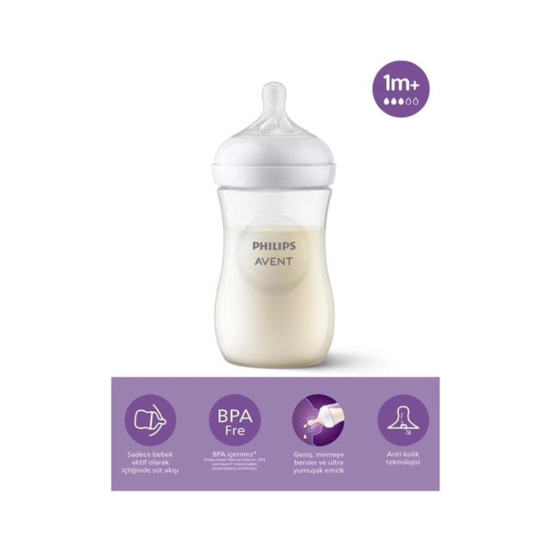 | سایر ویژگی ها | دهانه عریض سازگار با پمپهای شیردوش Avent سرشیشه مشابه سینه مادر (Natural Response) دارای سوپاپ ضدنفخ (Anti-colic valve) قابلیت انتخاب سایز سرشیشه فاقد BPA مقاوم در برابر حرارت پلاستیک باکیفیت و مقاوم |