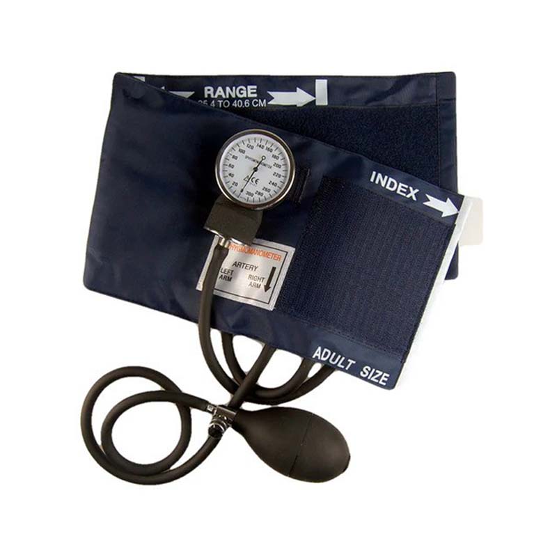 | اقلام همراه | مانومتر (صفحه عقربهای) کاف پارچهای با کیسه هوای داخلی پوار (پمپ دستی) با شیر تخلیه فلزی گوشی پزشکی (استتوسکوپ) کیف نگهدارنده زیپدار دفترچه راهنما |