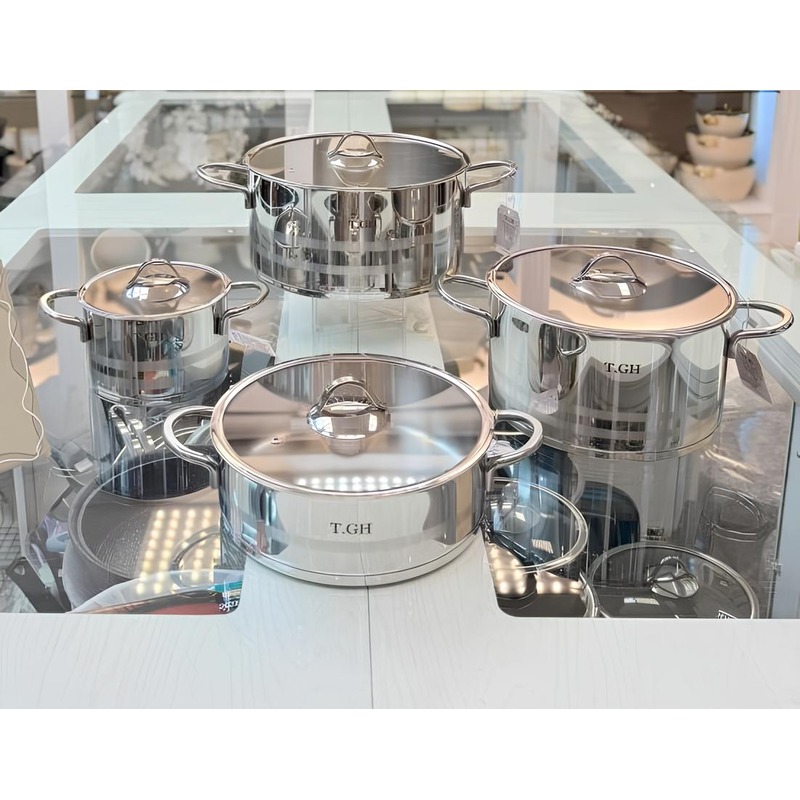 قابلمه استیل تی جی اچ سایز 16 با درب پیرکس و کفه چدن مدل 40205