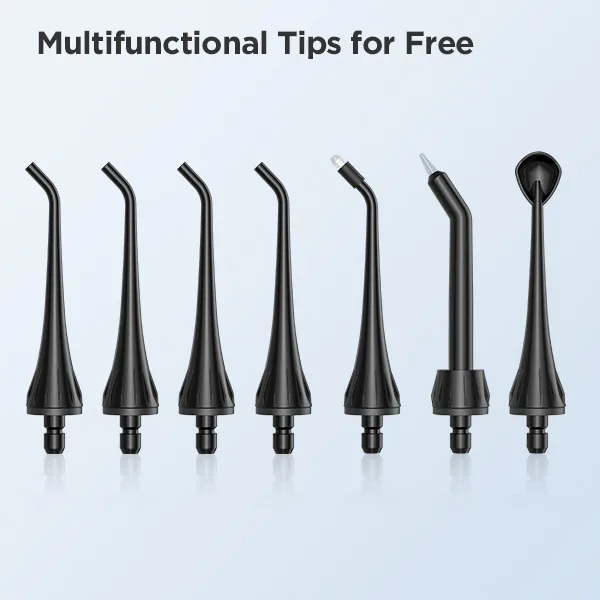 این واترجت مجهز به مخزن آب ۳۰۰ میلیلیتری و ۸ سری مختلف است که نیازهای متنوع دهان و دندان شما را پوشش میدهد. سریهای قابل تعویض، امکان تمیز کردن دقیق بین دندانها، زیر لثهها و حتی اطراف بریسها یا ایمپلنتها را فراهم میکنند.