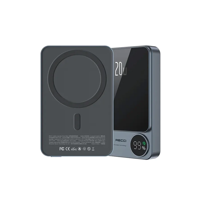پاوربانک بی‌سیم RECCI مدل RPB-W16 با ظرفیت 10000 میلی‌آمپر ساعت، یک شارژر قابل حمل و قدرتمند است که برای شارژ آسان و سریع دستگاه‌های شما طراحی شده است. این پاوربانک با قابلیت شارژ بی‌سیم مگنتی، شارژ سیمی، و ظرفیت بالای خود، گزینه‌ای ایده‌آل برای افرادی است که به دنبال یک شارژر چندمنظوره و قابل اعتماد هستند. این پاوربانک با قابلیت اتصال مگنتی، به راحتی به پشت گوشی‌های آیفون و سایر دستگاه‌های سازگار متصل می‌شود و شارژ بی‌سیم را فراهم می‌کند. علاوه بر شارژ بی‌سیم، این پاوربانک دارای پورت‌های USB-C است که امکان شارژ سیمی دستگاه‌های شما را فراهم می‌کند. علاوه بر شارژ بی‌سیم، این پاوربانک دارای پورت‌های USB-C است که امکان شارژ سیمی دستگاه‌های شما را فراهم می‌کند. این پاوربانک با ظرفیت بالا به شما امکان می‌دهد تا گوشی هوشمند، تبلت یا سایر دستگاه‌های خود را چندین بار شارژ کنید. این پاوربانک از فناوری شارژ سریع PD پشتیبانی می‌کند که به شما امکان می‌دهد دستگاه‌های خود را در مدت زمان کوتاه‌تری شارژ کنید.
