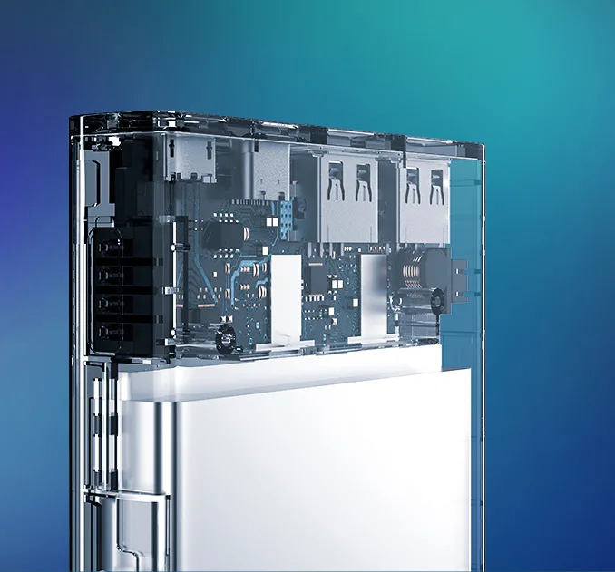 شارژ همراه فوق سریع 22.5 وات روموس مدل PWG10 ظرفیت 10000 میلی آمپر ساعت با رواج فناوری شارژ سریع ، مردم نیازهای بالاتر و بالاتری به کیفیت پاور بانک ها دارند. امروز ، من یک ارزیابی جامع از پاوربانک دو طرفه شارژ سریع PWG10  برای شما ارائه می دهد . فرایند جدید رنگ آمیزی چند رنگ و چند لایه یک اثر شگفت انگیز شبیه شفق قطبی در دو قطب زمین است. ایجاد می کند و طراحی زیبایی این شارژر همراه خیره کننده است. در دو طرف ، یک کلید لمسی با تشخیص اثر انگشت یکپارچه و دو حالت نشانگر LED (شارژ سریع نور آبی یخ ، نور سفید شارژ معمولی) چیده شده است. این سوئیچ لمسی به ویژه قابل ذکر است. من تشخیص اثر انگشت را در تلفن های همراه بسیار دیده ام و برای اولین بار در پاور بانک ها آن را دیده ام. کلید لمسی ، میزان جذب گرد و غبار را کاهش می دهد . اندازه این پاوربانک L147xW70.6xH15.6mm است. من تعجب می کنم که با این ظرفیت پاور بانک را می توان اینقدر نازک طراحی کرد. این قطر یک قلم معمولی است .استفاده از آن به شدت راحت است و باعث می شود همه این شارژر همراه را دوست داشته باشند. پنج پورت در بالا ملاحظه می کنید که  پورت Type C با هر دو عملکرد ورودی و خروجی وجود دارد. سه ورودی و سه خروجی وجود دارد. طبق آزمایش ، همه آنها از شارژ سریع پشتیبانی می کنند. مشخصات شارژ مربوطه نیز در زیر هر رابط مشخص شده است. فویل فلزی مسی در هر دو طرف پوسته متصل می شود و پد حرارتی سفید روی صفحه مدار متصل است. گرما از طریق پد حرارتی به فویل مسی منتقل می شود. حرارت تولید شده در آن زمان ، دمای پاوربانک را در سطح معقولی کنترل می کند.