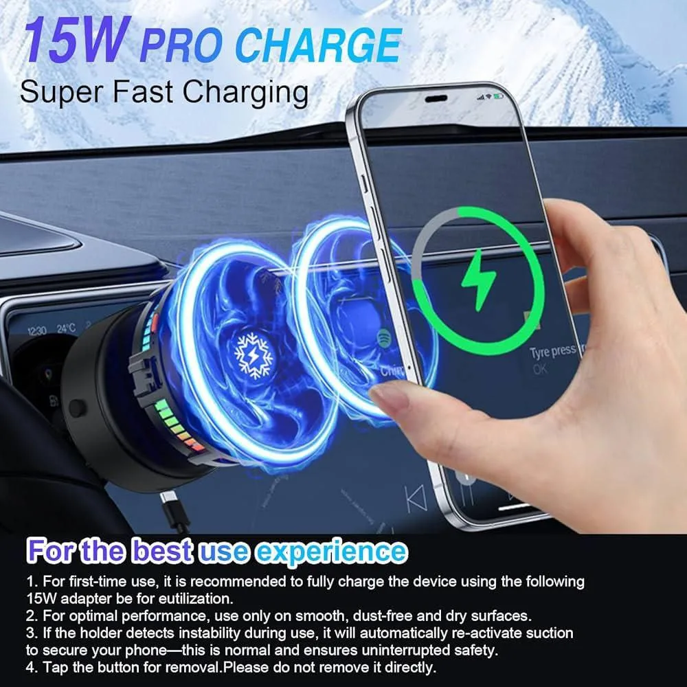 | قابلیت های ویژه | اتصال هولدر با فناوری ایجاد خلاء, برق مستقیم ( برای شارژ بی سیم ), چرخش 360 درجه, دارای پایه تنظیم زاویه, دارای دو حلقه فلزی اضافه, دارای فن خنک کننده, دارای گیره نگهدارنده گوشی موبایل, رقص نور RGB, مجهز به قابلیت شارژ بی سیم, نوع هولدر : مکشی – مگنتی |