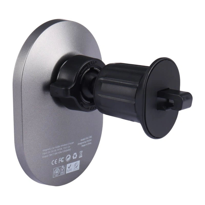 پایه نگهدارنده و شارژر بی سیم پرووان مدل PHL1185 ظرفیت ۱۵ وات و استفاده از ۶ آهنربا قوی، نگهداری امن گوشی در خودرو را با شارژ همزمان ممکن میکند.