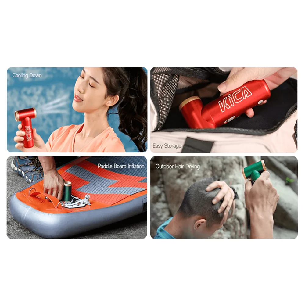 اگر به دنبال یک پمپ باد کوچک، سبک و کارآمد هستید، پمپ باد کیکا مدل KICA JET FAN 2 می‌تواند انتخاب مناسبی برای شما باشد. این پمپ باد با طراحی منحصر به فرد و قابلیت‌های متنوع، به شما کمک می‌کند تا در هر زمان و مکانی از آن استفاده کنید. با وجود ابعاد کوچک، این پمپ باد از قدرت بالایی برخوردار است  وزن این پمپ باد تنها 300 گرم است و به راحتی می‌توانید آن را در کوله‌پشتی یا جیب خود حمل کنید. با باتری داخلی قابل شارژ، نیازی به سیم و پریز برق ندارید و می‌توانید در هر مکانی از آن استفاده کنید. علاوه بر باد کردن، این پمپ باد می‌تواند به عنوان دمنده نیز استفاده شود و برای تمیز کردن گرد و غبار، خشک کردن مو و حتی روشن کردن آتش کاربرد دارد. بدنه این پمپ باد از جنس آلومینیوم ساخته شده است که علاوه بر زیبایی، مقاومت بالایی نیز دارد.